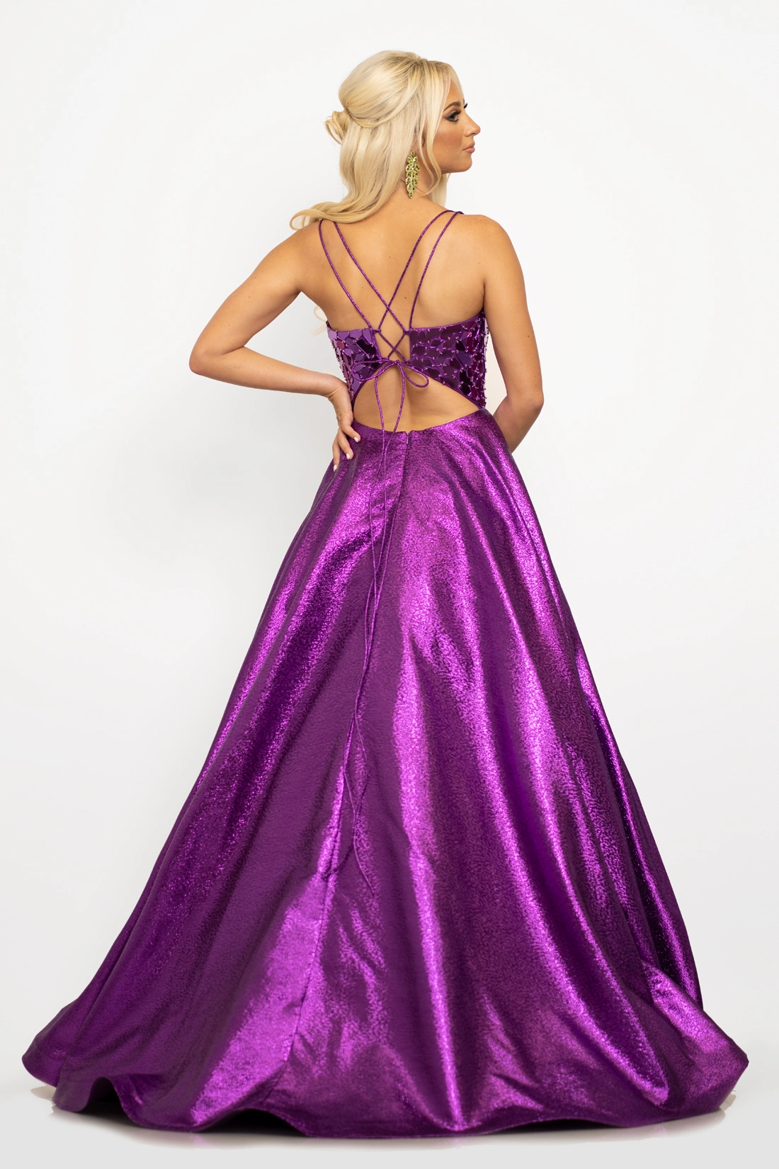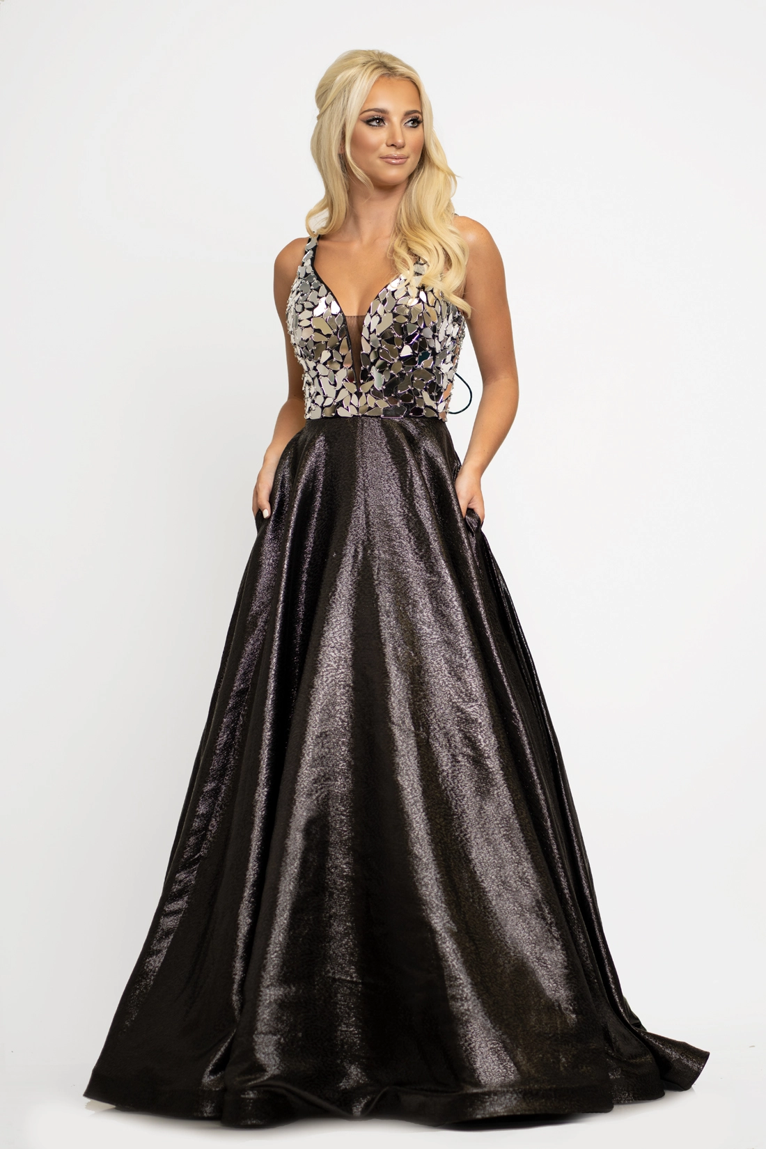 - Fabric:Mesh, Metallic Brocade, Satin Lining
