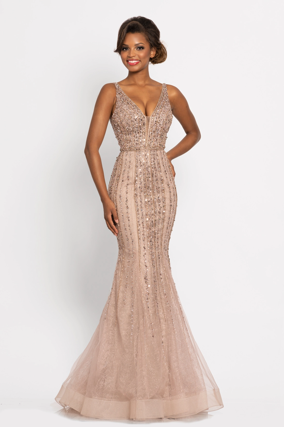 - Fabric:Embroidered Glitter Mesh, Mesh, Stretch Lining